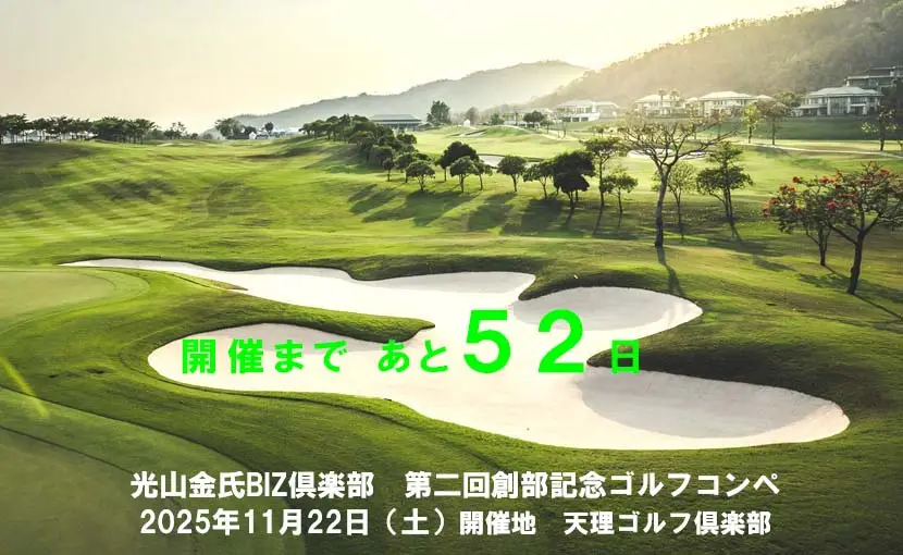 光山金氏BIZ倶楽部 第2回創部記念ゴルフコンペ2025まであと52日